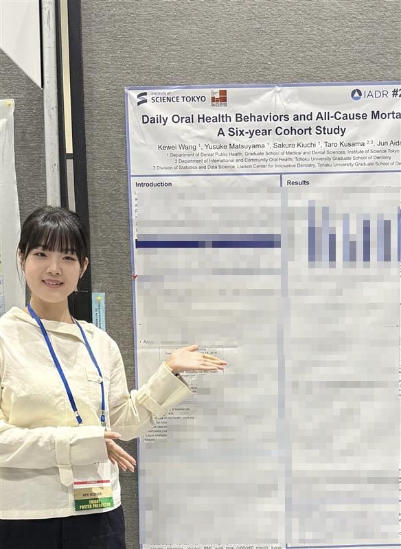 大学院生のWangさんが、2026 IADR/AADOCR/CADR General Session & Exhibitionにて「Daily Oral Health Behaviors and All-Cause Mortality: A Six-year Cohort Study」を発表しました。